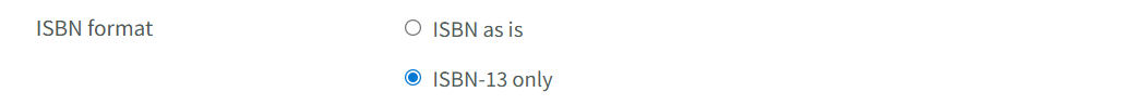 This is the default. The record will be output in your data file with the ISBN as entered in the record. For nearly all resources published prior to 2007, the ISBN will be in 10-digit format. Most resources published after 1 January 2007 will have only a 13-digit ISBN; these records will contain the ISBN in 13-digit format.